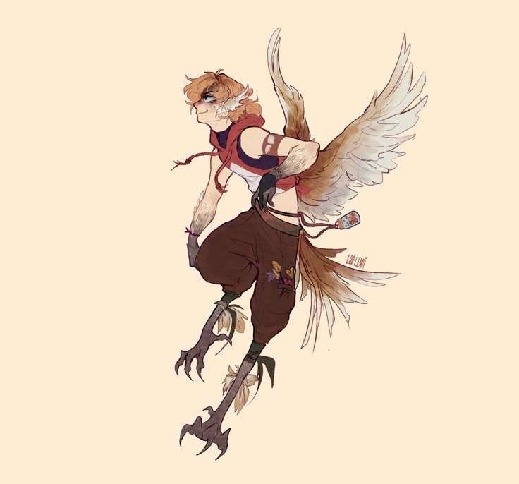 Описание Авиане - пернатые существа, схожие с людьми. Иногда имеют клюв вместо рта и ноги, схожие с птичьими, а оперенье разнится от особи к особи, начиная от перьев на руках, заканчивая крыльями на спине или пояснице. В разы легче представителей других рас, что позволяет им парить в воздухе на протяжении какого-то времени, однако полноценно летать не способны. Чаще всего авиане являются более культурным, духовным, высшим слоем общества даже по меркам Свободных Земель, однако как и везде, среди представителей этой расы бывают исключения, в виде взрывных характером (и не только) птиц-бунтарей-воителей. Их имена склонны звучать мелодично и грациозно, чаще всего описывая либо их главное достояния - крылья - либо, род их происхождения (Враны, Певчьи). Примеры имён: